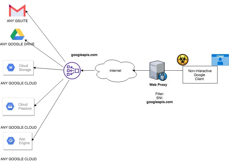 - Once you Allow googleapi.com you are allowing ALL outbound connections to ALL googleapi.com API’s to WHOEVER’s GSUITE and/or Google Cloud Platform Account …..