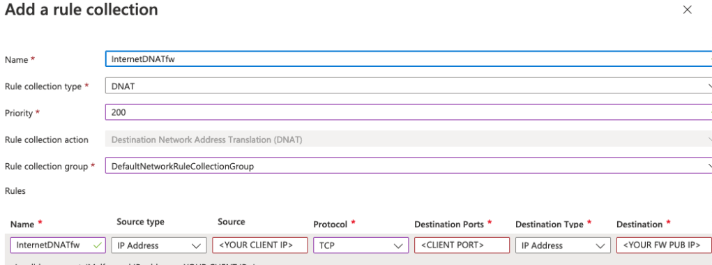 Afterwards you can create a firewall rule and NSG rules which allows jump host traffic from the internet client–> firewall–> private subnet. All without provisioning public IPs to private subnet servers which reduces the attack surface to the Azure firewall ingress point.
