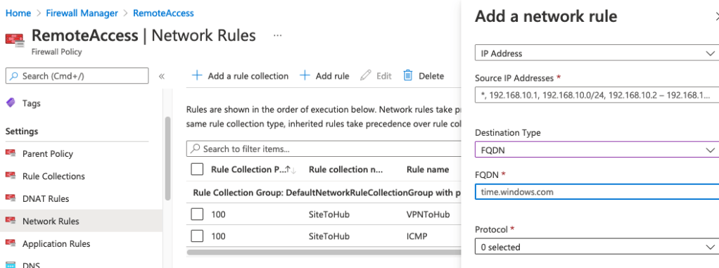 Azure firewall DNAT is a destination port forwarding feature in the Azure Firewall. Firstly, you most create a policy collection in the Azure firewall manager and then associate the policy collection with your azure firewall.