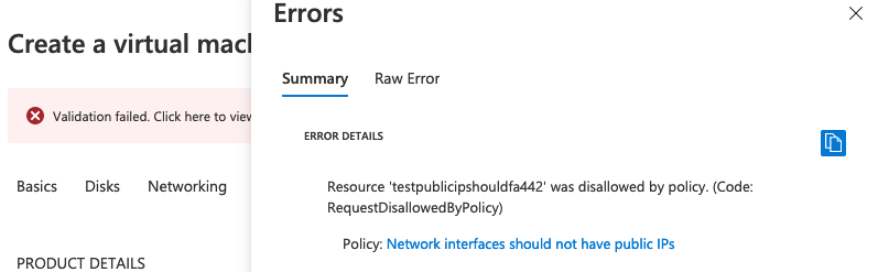 If you don’t want the “spoke virtual networks” to accidentally be deployed with Public IPs exposing them to internet ingress then you can harden the platform using azure policies. This is a setting I personally tested after getting the firewall and VPN set up, but ideally it would be better to have your hub and spoke topology over-layed with these hardening policies firstly.