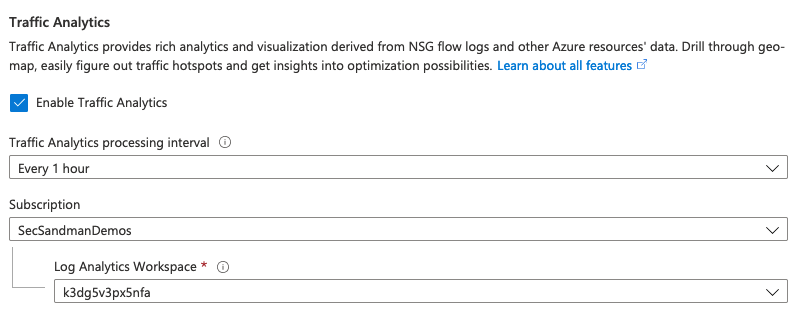 NSG Flow logs can then be enhanced with Traffic Analysis which ingest data from NSG Flow logs which are stored on Storage Accounts, then into Log Analytics and then enriched with more data points.
