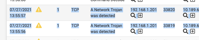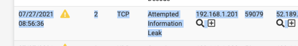 RESULT: NO ALERTS IN THE NATIVE IDSPS FEATURE, BUT THE FIREWALL LOGS WERE AVAILABLE WITHIN MINUTES …. My local inline IDS/IPS running Emerging Threats (ET) Suricata and snort rules did not pick up TCP attempts either, as I suspected any client-server response data would be encrypted any-how making in-line MitM detection difficult …