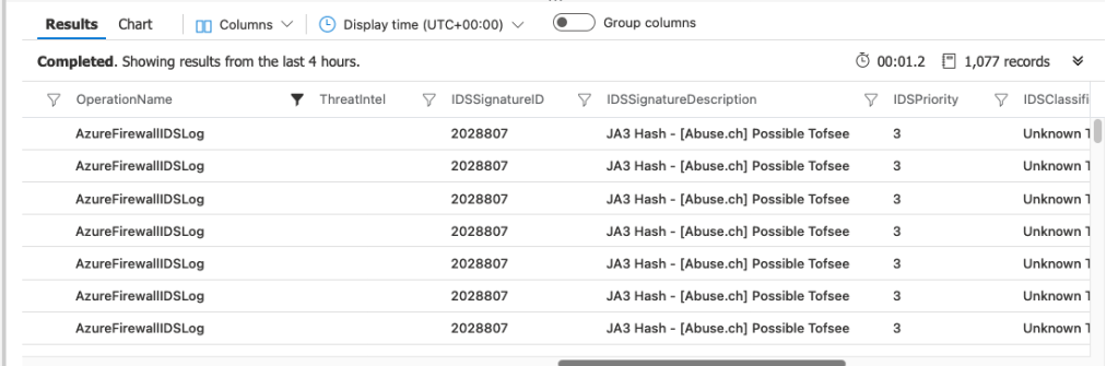 - The Azure firewall IDPS did not detect Hydra TCP SSH brute force attempts from the internet over DNAT. I expected an excessive transmission alert to port 22 within the VNET at the very least but I did not expect them to alert on agent headers given the encrypted nature of RDP/SSH.