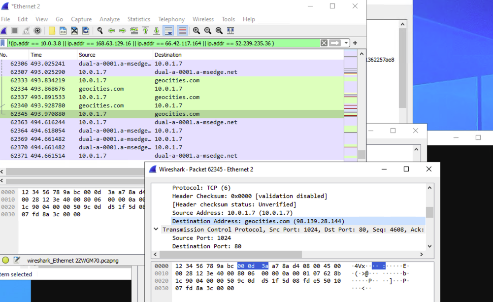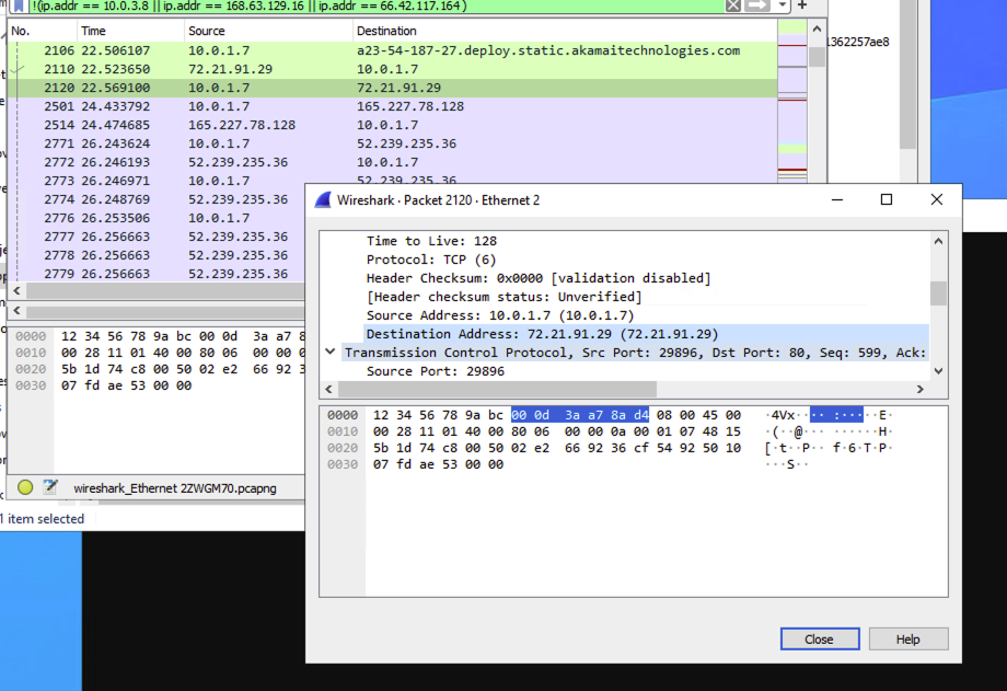 Although many of these domains were associated with malware distribution in VIRUSTOTAL, they also provide legitimate proxy and caching services world-wide. Unfortunately, many clients and service may resolve to shared CDN proxy infrastructure making attribution difficult and difficult in confirming whether C&C is occurring. In my particular case, I could confirm that the local EXE and VBS scripts did execute and then watch this unusual network traffic attempts. I wanted more empirical evidence that the malware worked to ensure that the Azure IDPS had an opportunity to detect the C&C communications.