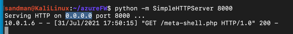 This was another long shot. I doubted the Azure firewall would be used as an inspection point for HTTP Javascript client-side infections. However, because Microsoft advertises the TLS interception and IDS signatures … maybe it is fair to assume they could break open packets to inspect headers or other payload content to common signatures. In this exercise, I set up the Browser Exploitation Framework (BeEF) 0.5.0.0-alpha-pre, hosted it internally to Azure VNET and hooked two Windows machines.