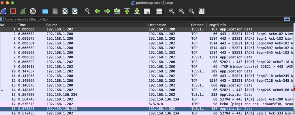 Afterwards, I let the CyberPunk 2077 play in the background for around 20 minutes. I could not afford to let this play in the background for hour long sessions due to the potential storage impact on my local lab network device. Then I dumped the PCAPs onto my local lab machine for the typical manual WireShark analysis….