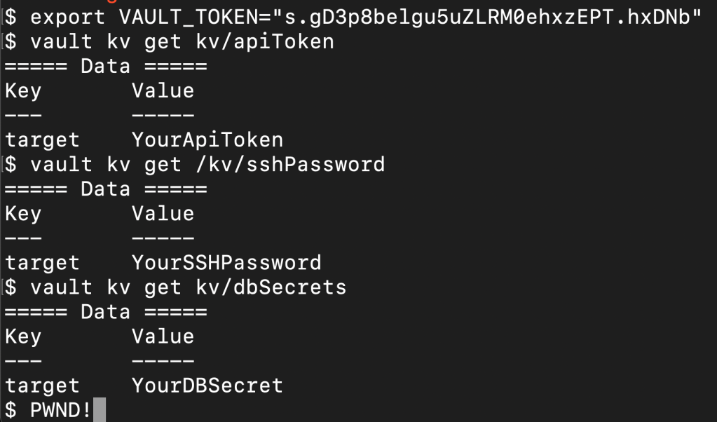 I’m going to HashiCorp VAULT to illustrate the Application Architecture vulnerability but this concept applies beyond just HashiCorp. I only use this product because I happened to have it installed and configured to whip this demo up quickly.