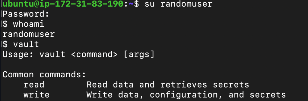 Let’s just switch over to the randomUser and re-authenticated to VAULT