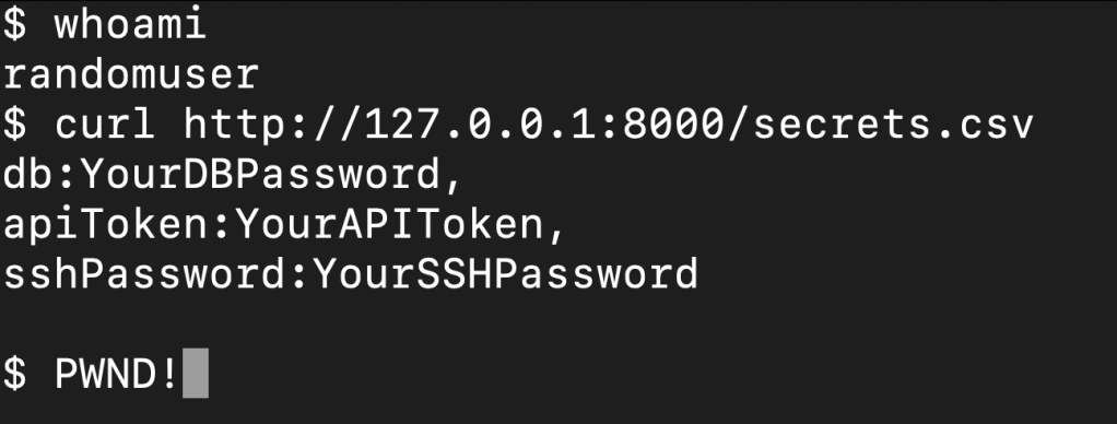 Now, all files within the /Secrets directory are exposed via HTTP server on the loopback address only …