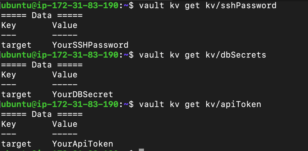 vault kv put kv/dbSecrets target=YourDbSecrets