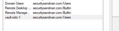 I created an Active Directory group called vault-oidc-1, although in your environment you may support Tenant namespace and follow a more strict naming convention such as vault-tenant-role