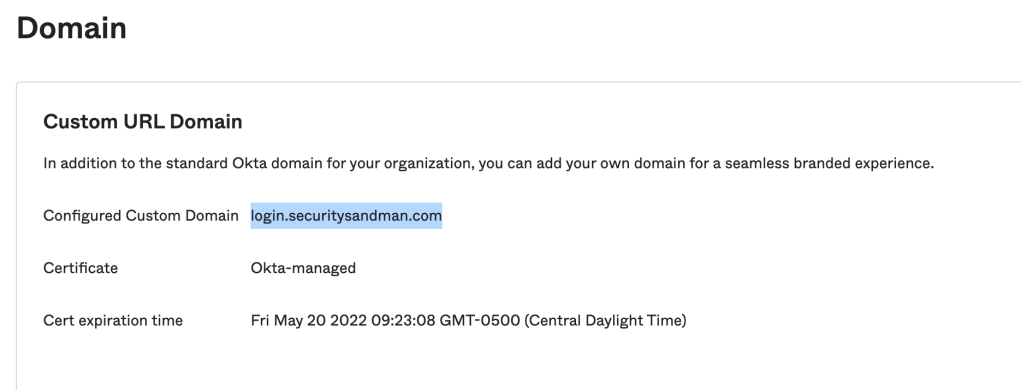 Okta organizations are logical boundaries that essentially represent your company’s core domain space. For example, securitysandman.com would be an Okta organization.