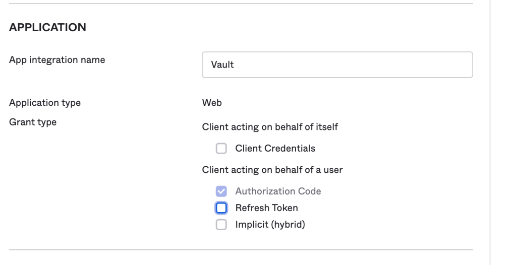 You’ll notice mention in VAULT source code and in Okta configurations of the implicit grant type. Avoid this.
