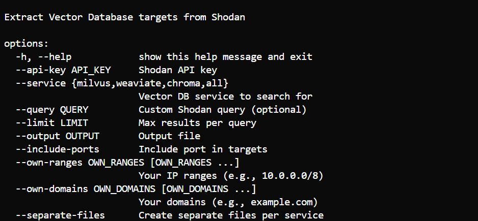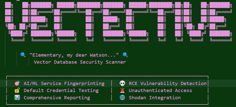 The tool scans standard and nonstandard ports (e.g. Milvus at 19530, Chroma at 8000, Kibana at 5601) because these endpoints often expose the vector DB embedding layer itself: