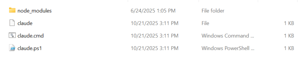 -rw-r--r-- claude.cmd (Windows doesn't use +x)