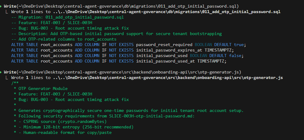 1. Attack-vector + threat tacebility matrix 2. Threat model docs one markdown file per threat, MUST/MUST NOT blocks, RFC citations3. Feature slices work units explicitly tagged with the threat IDs and Vtor ID they mitigate3. Skill files reusable agent context docs with domain expertise and constraints4. Attack-vector unit tests named after what they prevent, not what they test, mapped to Featire Clises and THreat IDs5 Bug Report matrix and status that feeds back into threats, vectors and features/slices